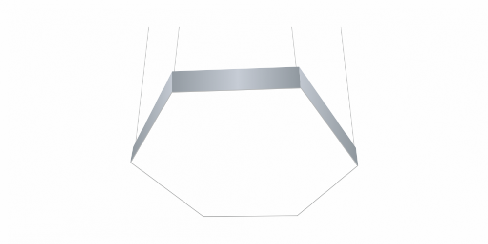 Светодиодный светильник в виде гексагона LiNE-PRO мощностью 110 Вт 900 мм изготовлен из алюминиевого основания, с установленными на него светодиодными модулями. Возможна различная цветовая температура - 3000К, 4000К, 5000К, 6000К. Боковины могут быть изготовлены из плотного ПВХ различного цвета, на выбор или светотехнического акрила и выполнять функцию рассеивателя. Блок питания внутри корпуса светильника. Монтаж на тросовых подвесах или непосредственно к потолку или стене.