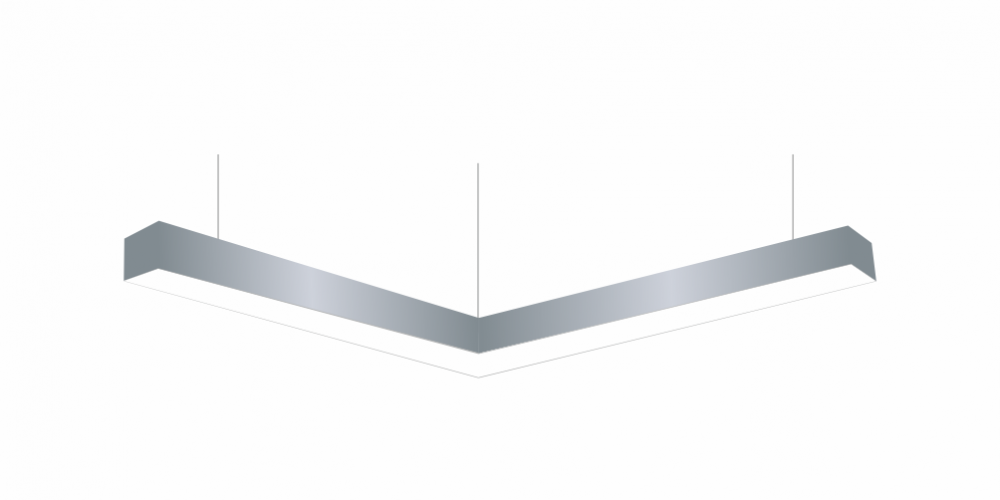 Светодиодный Угловой светильник LiNE-Pro 120гр. 1000х1000mm 80W 4000K серый предназначен для накладного или подвесного монтажа на тросовые подвесы. Изготовлен из сплошного сварного алюминиевого профиля в виде угла под 120 градусов. Высота установки светильника регулируется подвесом с цанговым тросовым зажимом и может варьироваться от 0,05 метра до 4 метров от основного потолка. Светильник имеет равномерную засветку по всей площади рассеивателя. Источник питания находится внутри корпуса. Торцевые заглушки входят в комплект. Возможно изготовление светильника с магистральной проводкой для соединения нескольких светильников в сплошную конструкцию.