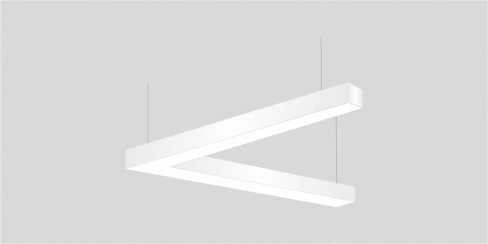 Светодиодный Угловой светильник LiNE-Pro 45гр. 1000х1000mm 40W 5000K белый предназначен для накладного или подвесного монтажа на тросовые подвесы. Изготовлен из сплошного сварного алюминиевого профиля в виде угла под 45 градусов. Высота установки светильника регулируется подвесом с цанговым тросовым зажимом и может варьироваться от 0,05 метра до 4 метров от основного потолка. Светильник имеет равномерную засветку по всей площади рассеивателя. Источник питания находится внутри корпуса. Торцевые заглушки входят в комплект. Возможно изготовление светильника с магистральной проводкой для соединения нескольких светильников в сплошную конструкцию.