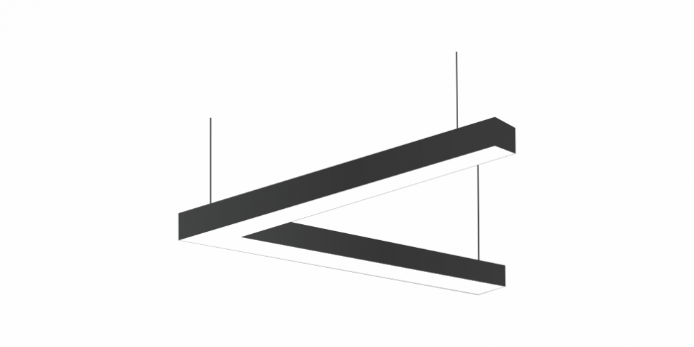 Светодиодный Угловой светильник LiNE-Pro 45гр. 1000х1000mm 80W 3000K черный предназначен для накладного или подвесного монтажа на тросовые подвесы. Изготовлен из сплошного сварного алюминиевого профиля в виде угла под 45 градусов. Высота установки светильника регулируется подвесом с цанговым тросовым зажимом и может варьироваться от 0,05 метра до 4 метров от основного потолка. Светильник имеет равномерную засветку по всей площади рассеивателя. Источник питания находится внутри корпуса. Торцевые заглушки входят в комплект. Возможно изготовление светильника с магистральной проводкой для соединения нескольких светильников в сплошную конструкцию.