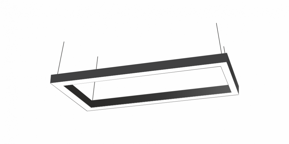 Светодиодный Прямоугольный светильник LiNE-Pro 1000х500mm 55W 5000K черный предназначен для накладного или подвесного монтажа на тросовые подвесы. Изготовлен из сплошного сварного алюминиевого профиля в виде прямоугольника. Высота установки светильника регулируется подвесом с цанговым тросовым зажимом и может варьироваться от 0,05 метра до 4 метров от основного потолка. Прямоугольный линейный светильник имеет равномерную засветку по всей площади рассеивателя. Источник питания находится внутри корпуса.
