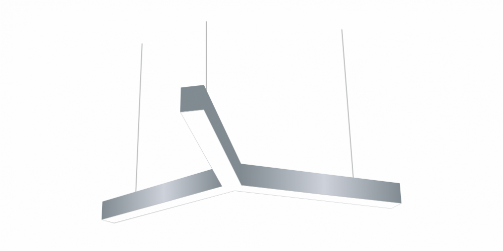Светодиодный Лучевой светильник LiNE-Pro 3х750mm 80W 4000K серый предназначен для накладного или подвесного монтажа на тросовые подвесы. Изготовлен из сплошного сварного алюминиевого профиля в виде буквы «Y». Высота установки светильника регулируется подвесом с цанговым тросовым зажимом и может варьироваться от 0,05 метра до 4 метров от основного потолка. Светильник имеет равномерную засветку по всей площади рассеивателя. Источник питания находится внутри корпуса. Торцевые заглушки входят в комплект. Возможно изготовление светильника с магистральной проводкой для соединения нескольких светильников в сплошную конструкцию.