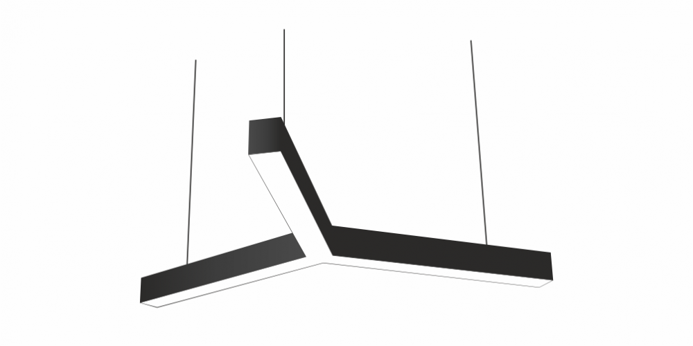 Светодиодный Лучевой светильник LiNE-Pro 3х750mm 80W 5000K черный предназначен для накладного или подвесного монтажа на тросовые подвесы. Изготовлен из сплошного сварного алюминиевого профиля в виде буквы «Y». Высота установки светильника регулируется подвесом с цанговым тросовым зажимом и может варьироваться от 0,05 метра до 4 метров от основного потолка. Светильник имеет равномерную засветку по всей площади рассеивателя. Источник питания находится внутри корпуса. Торцевые заглушки входят в комплект. Возможно изготовление светильника с магистральной проводкой для соединения нескольких светильников в сплошную конструкцию.