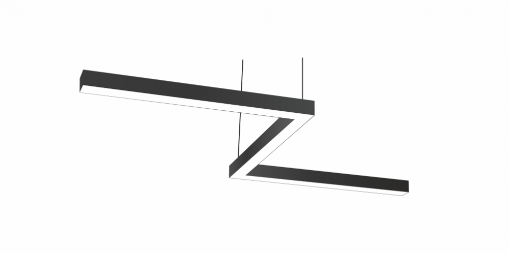 Фигурный светодиодный Светильник Зигзаг LiNE-Pro 3х500mm 60W 3000K черный предназначен для накладного или подвесного монтажа на тросовые подвесы. Изготовлен из сплошного сварного алюминиевого профиля в виде зигзага. Высота установки светильника регулируется подвесом с цанговым тросовым зажимом и может варьироваться от 0,05 метра до 4 метров от основного потолка. Светильник Зигзаг имеет равномерную засветку по всей площади рассеивателя. Источник питания находится внутри корпуса. Торцевые заглушки входят в комплект. Возможно изготовление светильника с магистральной проводкой для соединения нескольких светильников в сплошную конструкцию
