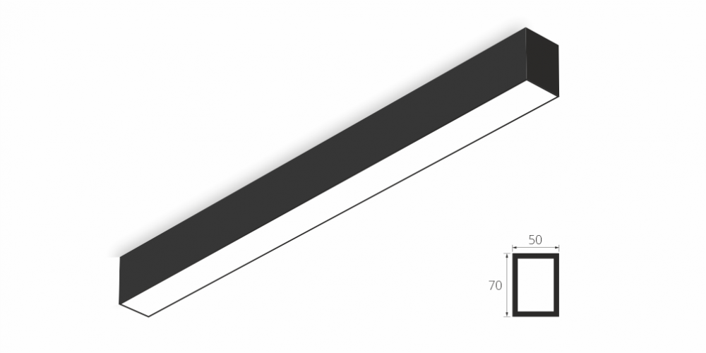 Линейный светодиодный Накладной светильник LiNE-Pro 70x50 2500mm 100W 5000K Черный предназначен для накладного монтажа на ровную поверхность для любых потолков. Изготовлен из алюминиевого профиля длиной 2500 мм, мощностью 100 Вт c цветовой температурой 5000 K, цвет корпуса Черный. Светильник имеет равномерную засветку по всей площади рассеивателя. Источник питания находится внутри корпуса. Торцевые заглушки входят в комплект.