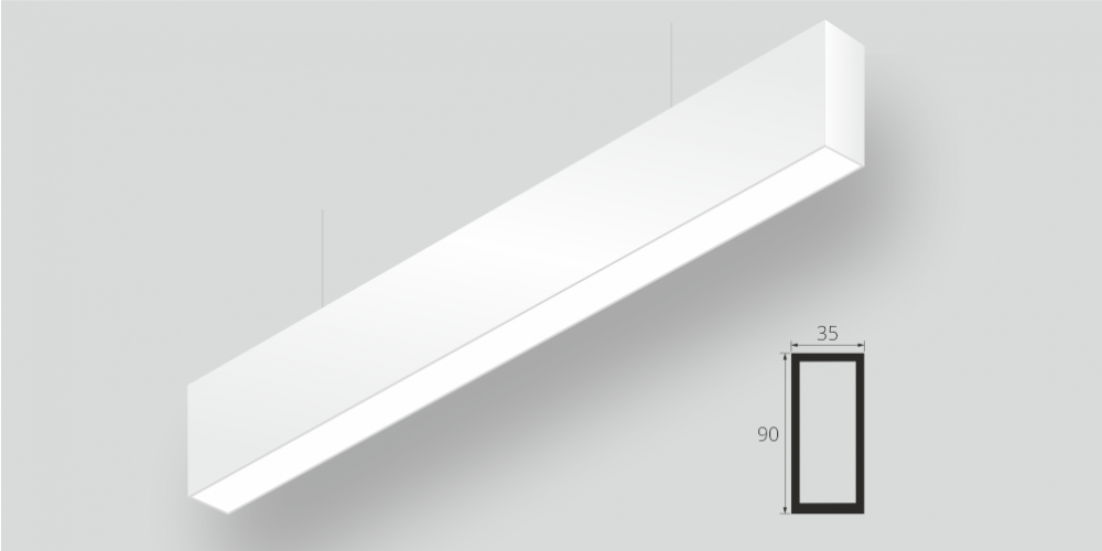 Линейный светодиодный Подвесной светильник LiNE-Pro 90x35 1500mm 42W 5000K Белый предназначен для подвесного монтажа на тросовые подвесы. Изготовлен из алюминиевого профиля длиной 1500 мм, мощностью 42 Вт c цветовой температурой 5000 K, цвет корпуса Белый. Высота установки светильника регулируется подвесом с цанговым тросовым зажимом и может варьироваться от 0,05 метра до 4 метров от основного потолка. Линейный светильник может использоваться для реечных потолков. Светильник имеет равномерную засветку по всей площади рассеивателя. Источник питания находится внутри корпуса. Торцевые заглушки входят в комплект.
