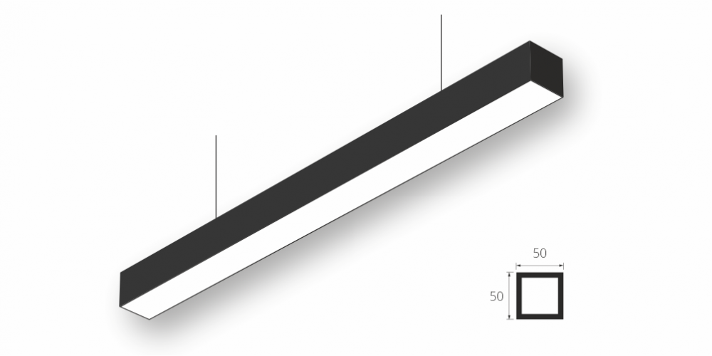 Линейный модульный светодиодный Подвесной светильник LiNE-Pro 50x50 1200mm 40W 5000K Черный предназначен для подвесного монтажа на тросовые подвесы. Изготовлен из алюминиевого профиля длиной 1200 мм, мощностью 40 Вт c цветовой температурой 5000 K, цвет корпуса Черный. Светильники соединяются в сплошную линию с помощью комплекта линейного соединения и сплошной магистральной проводки. Светильник имеет равномерную засветку по всей площади рассеивателя. Источник питания находится внутри корпуса.