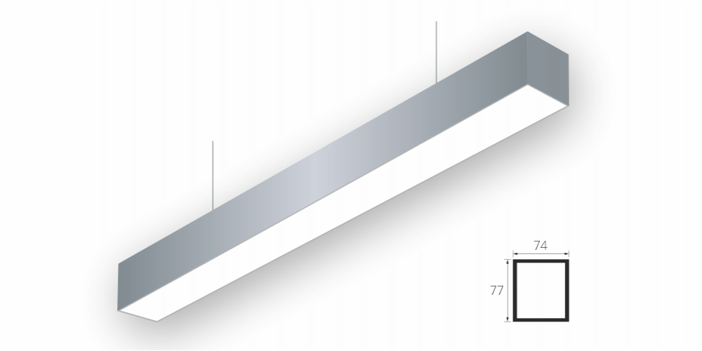 Линейный модульный светодиодный Подвесной светильник LiNE-Pro 77x74 1250mm 19W 3000K Серый предназначен для подвесного монтажа на тросовые подвесы. Изготовлен из алюминиевого профиля длиной 1250 мм, мощностью 19 Вт c цветовой температурой 3000 K, цвет корпуса Серый. Светильники соединяются в сплошную линию с помощью комплекта линейного соединения и сплошной магистральной проводки. Светильник имеет равномерную засветку по всей площади рассеивателя. Источник питания находится внутри корпуса.